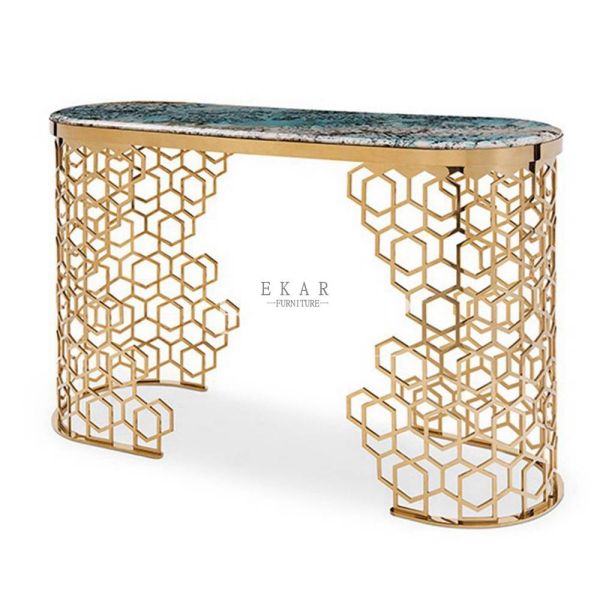 Deluxe European Stainless Steel Marble Top Hallway Console Table